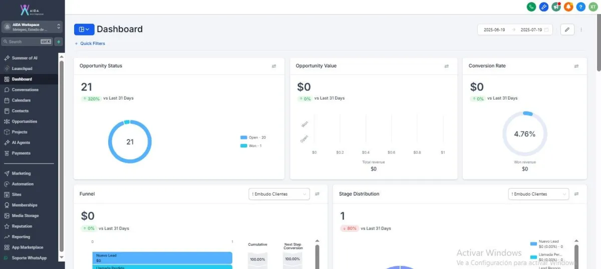 AIDA Workspace es una plataforma todo en uno que te ayuda a automatizar tu negocio, organizar tus clientes y cerrar más ventas sin complicarte.